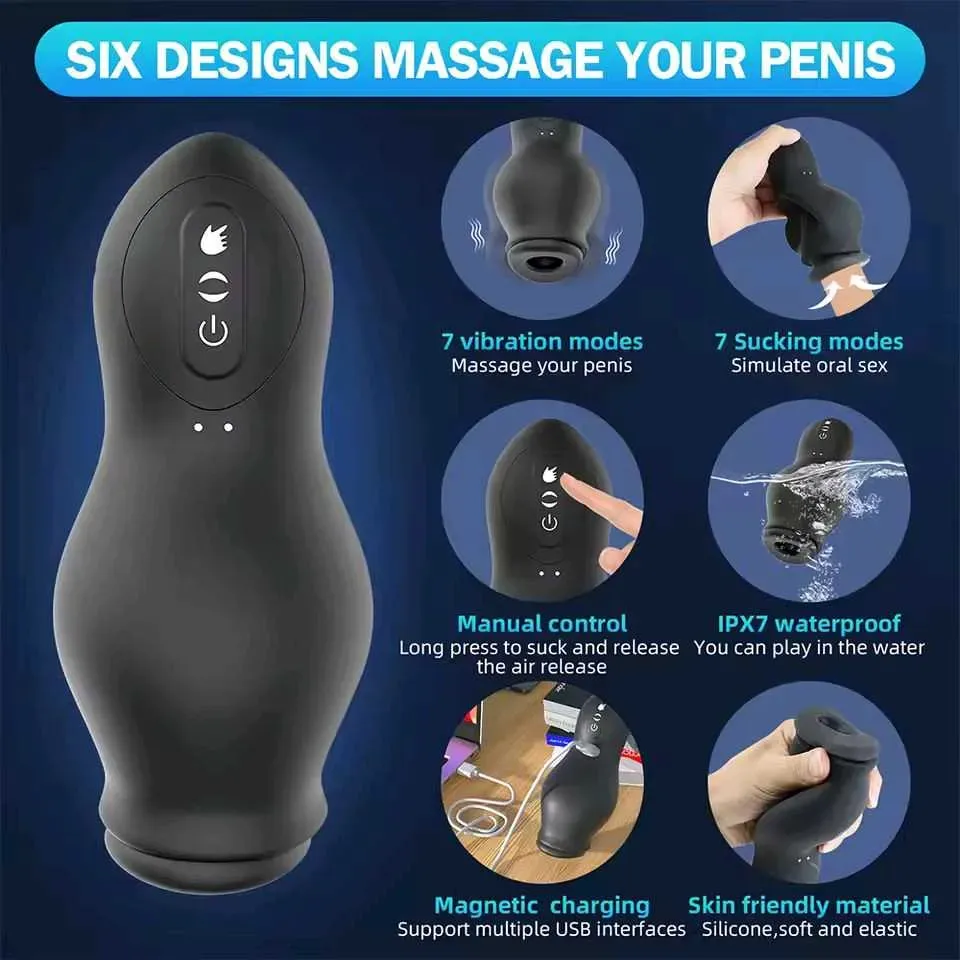 Masturbador de silicon puro para sensaciones increíbles, 7 frecuencias de Vibraciones potentes y 7 frecuencias de succión deliciosa, anatomía discreta, carga magnética, resistente al agua