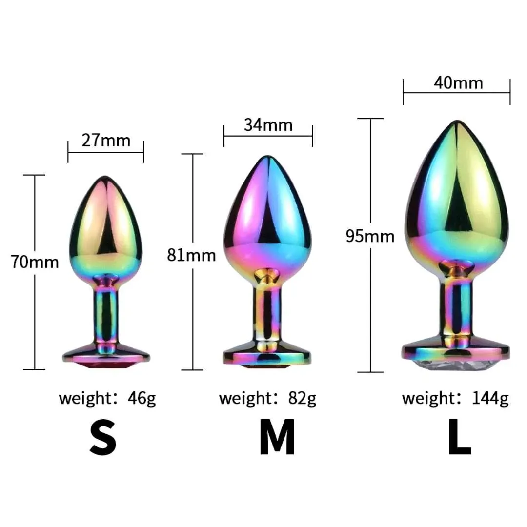 Plug anal grande de acero inoxidable con hermoso acabado tornasol, con gema en forma de corazón, tamaño, el color de la gema puede variar